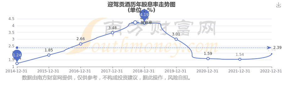 近年迎駕貢酒年度股息率走勢如下圖: