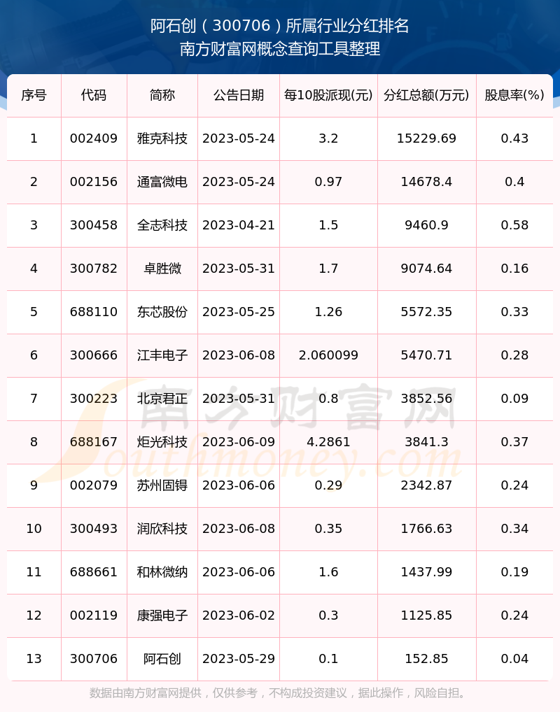二、阿石創(chuàng)300706行業(yè)分紅排名