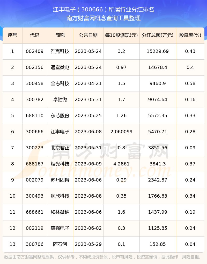 二、江豐電子300666行業(yè)分紅排名