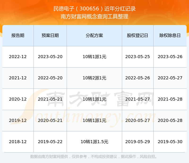 一、民德電子(300656)股票分紅記錄
