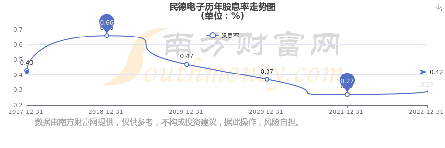 近年民德電子年度股息率走勢(shì)如下圖: