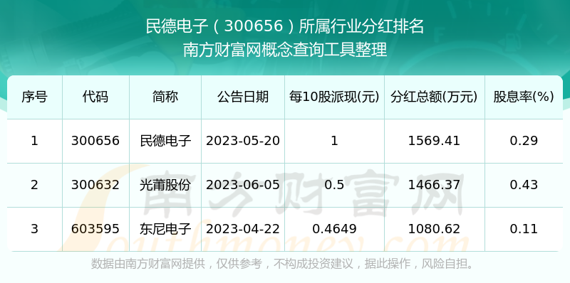 二、民德電子300656行業(yè)分紅排名
