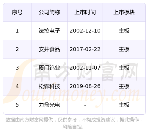 市值上,廈門海滄區(qū)主板上市公司市值排名情況:廈門鎢業(yè)507.23億、法拉電子275.58億、安井食品235.2億、松霖科技126.8億、力鼎光電116.92億。