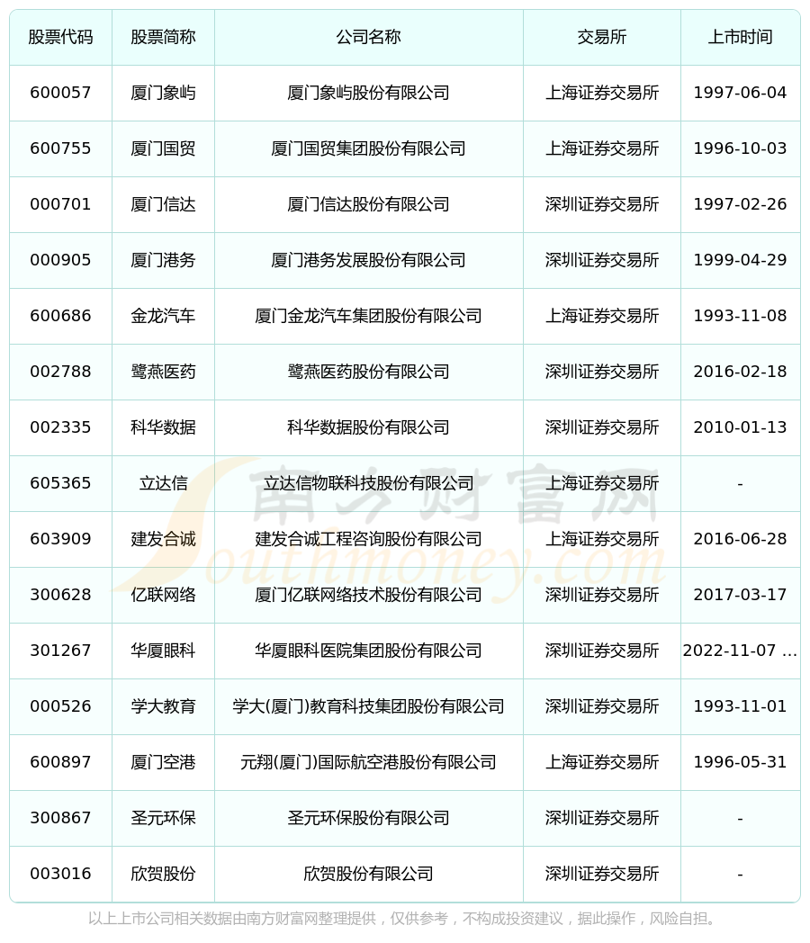 截至11月29日,廈門湖里區(qū)共有15家上市公司,南方財(cái)富網(wǎng)趨勢選股系統(tǒng)為您整理了廈門湖里區(qū)在A股上市的公司。