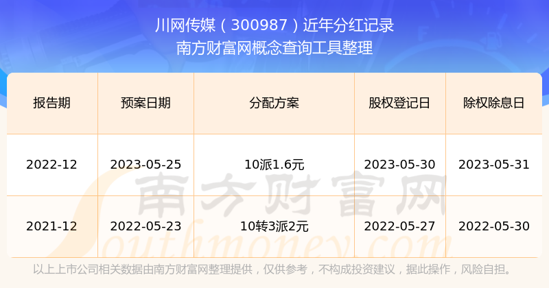 川網(wǎng)傳媒最新一次公布的分紅方案:10派1.6元。