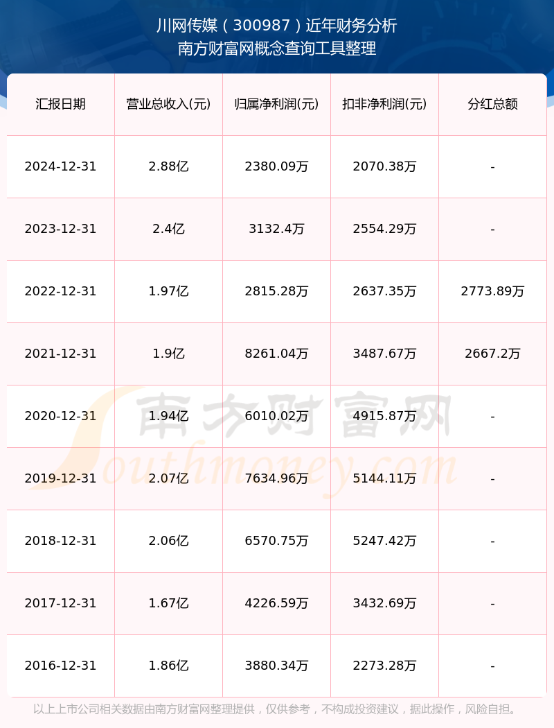 川網(wǎng)傳媒歷年分紅派息情況如下表所示: