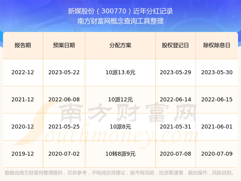 一、新媒股份(300770)股票分紅記錄