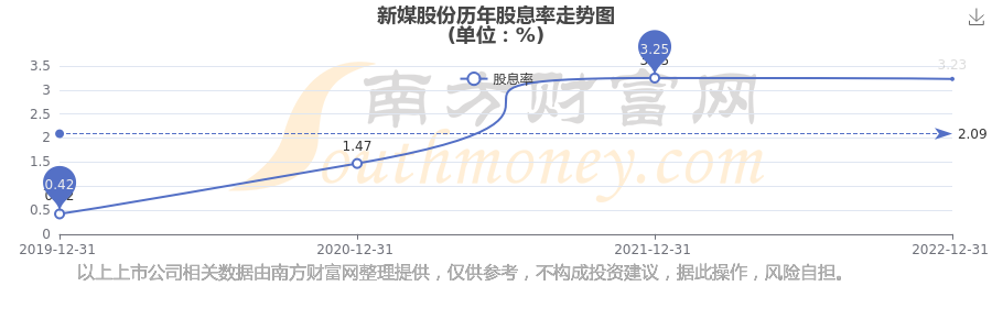 近年新媒股份年度股息率走勢(shì)如下圖: