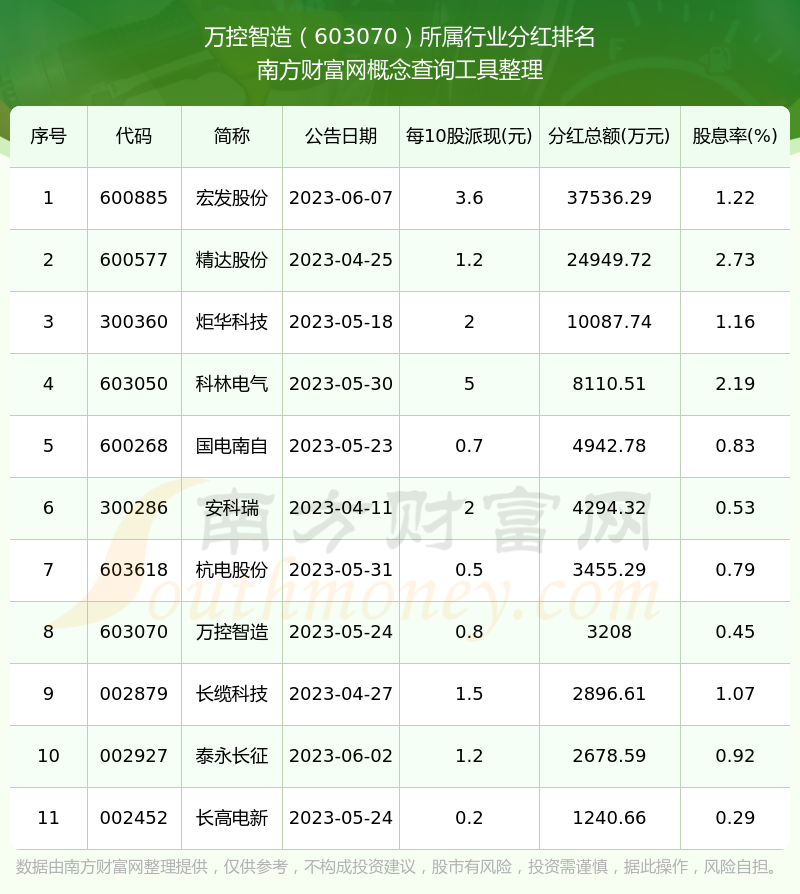 二、萬(wàn)控智造603070行業(yè)分紅排名
