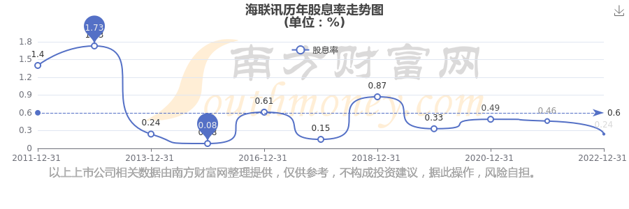海聯(lián)訊歷年股息率走勢(shì)如下圖: