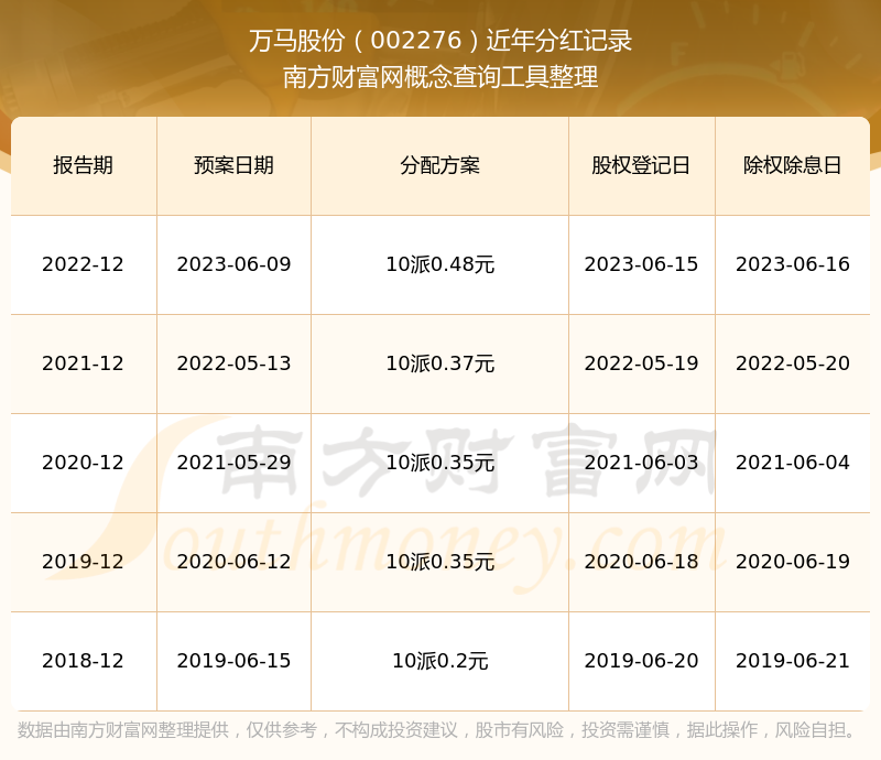 萬馬股份最新一次公布的分紅方案:10派0.48元。