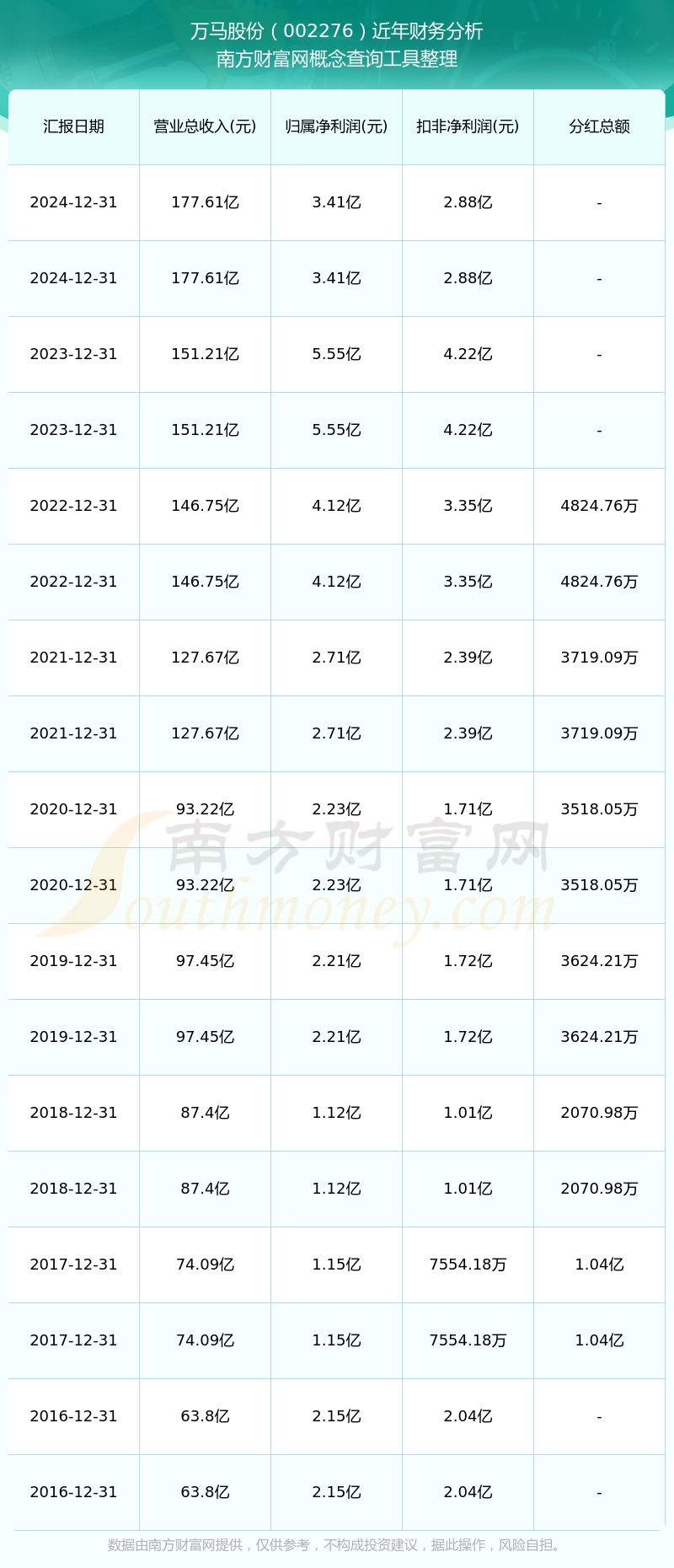 近年萬馬股份分紅派息情況如下表所示:
