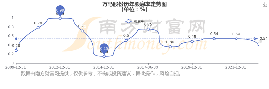 萬馬股份歷年股息率走勢如下圖: