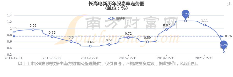 近年長(zhǎng)高電新年度股息率走勢(shì)如下圖: