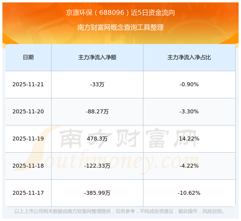 二、京源環(huán)保(688096)近期盤面、資金面情況