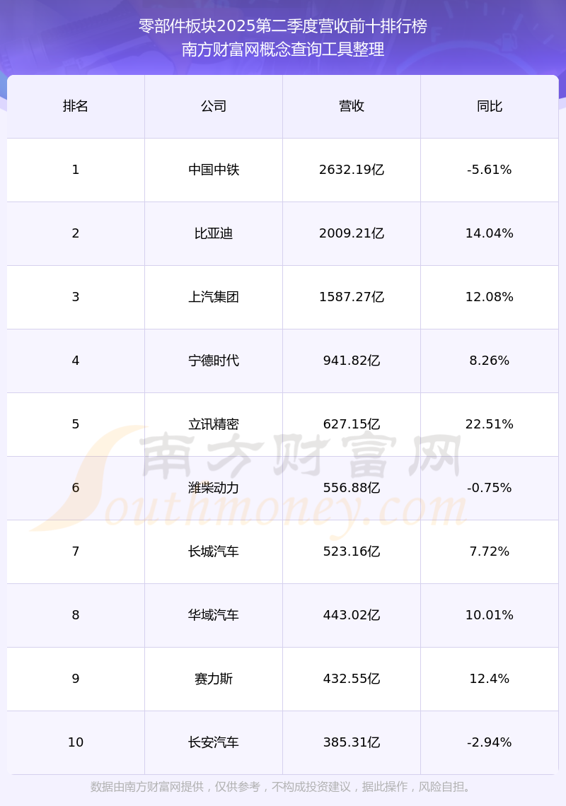 按照南方財(cái)富網(wǎng)概念查詢工具統(tǒng)計(jì),該股所屬板塊為零部件板塊,該板塊共有280只股票,富創(chuàng)精密2025第二季度營收在該板塊中排名為第128名,該板塊2025第二季度營收排名前十的股票如下表: