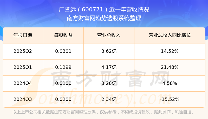 廣譽(yù)遠(yuǎn)股票近一年營收情況如下表: