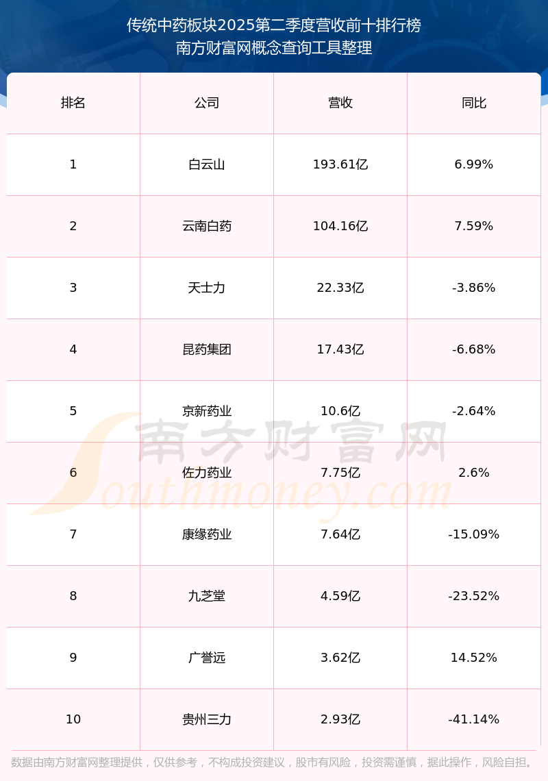 按照南方財富網(wǎng)概念查詢工具統(tǒng)計,該股所屬板塊為傳統(tǒng)中藥板塊,該板塊共有11只股票,廣譽(yù)遠(yuǎn)2025第二季度營收在該板塊中排名為第9名,該板塊2025第二季度營收排名前十的股票如下表: