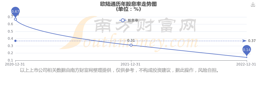 歐陸通最新一次公布的分紅方案為10派0.91元。本次權益分派股權登記日為2023年5月25日,除權除息日為2023年5月26日,派息日為2023年5月26日。