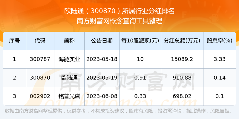 二、歐陸通300870行業(yè)分紅排名