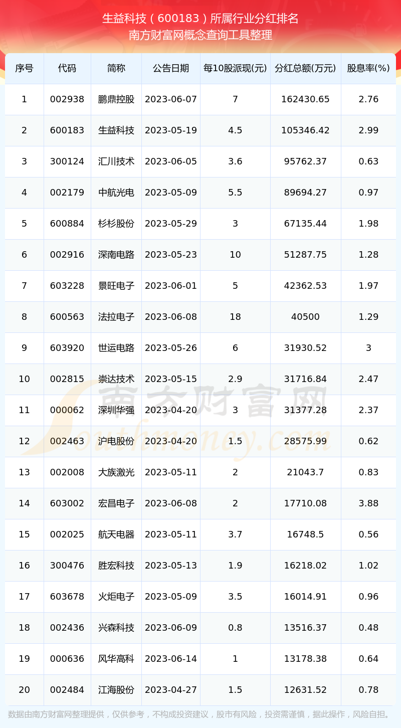 二、生益科技600183行業(yè)分紅排名