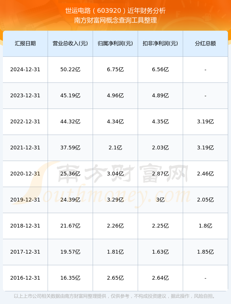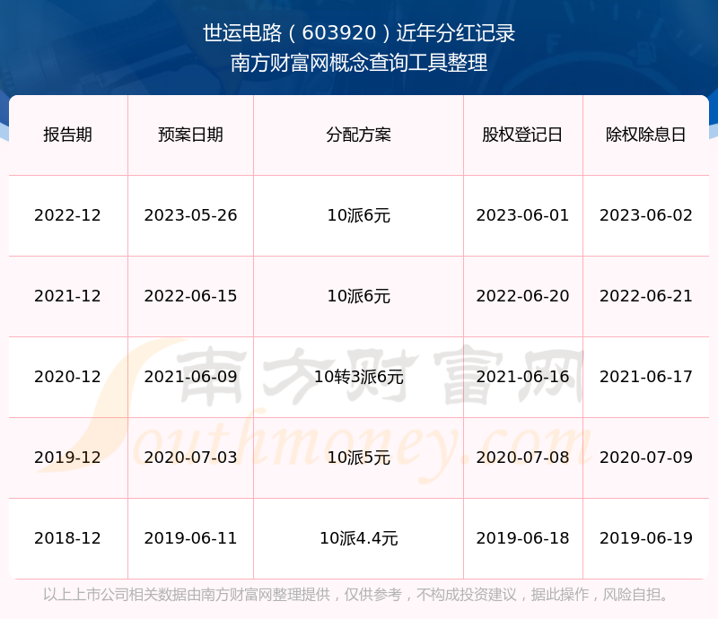 世運(yùn)電路歷年分紅派息情況如下表所示: