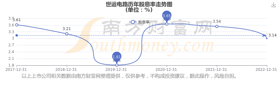 世運(yùn)電路歷年股息率走勢(shì)如下圖: