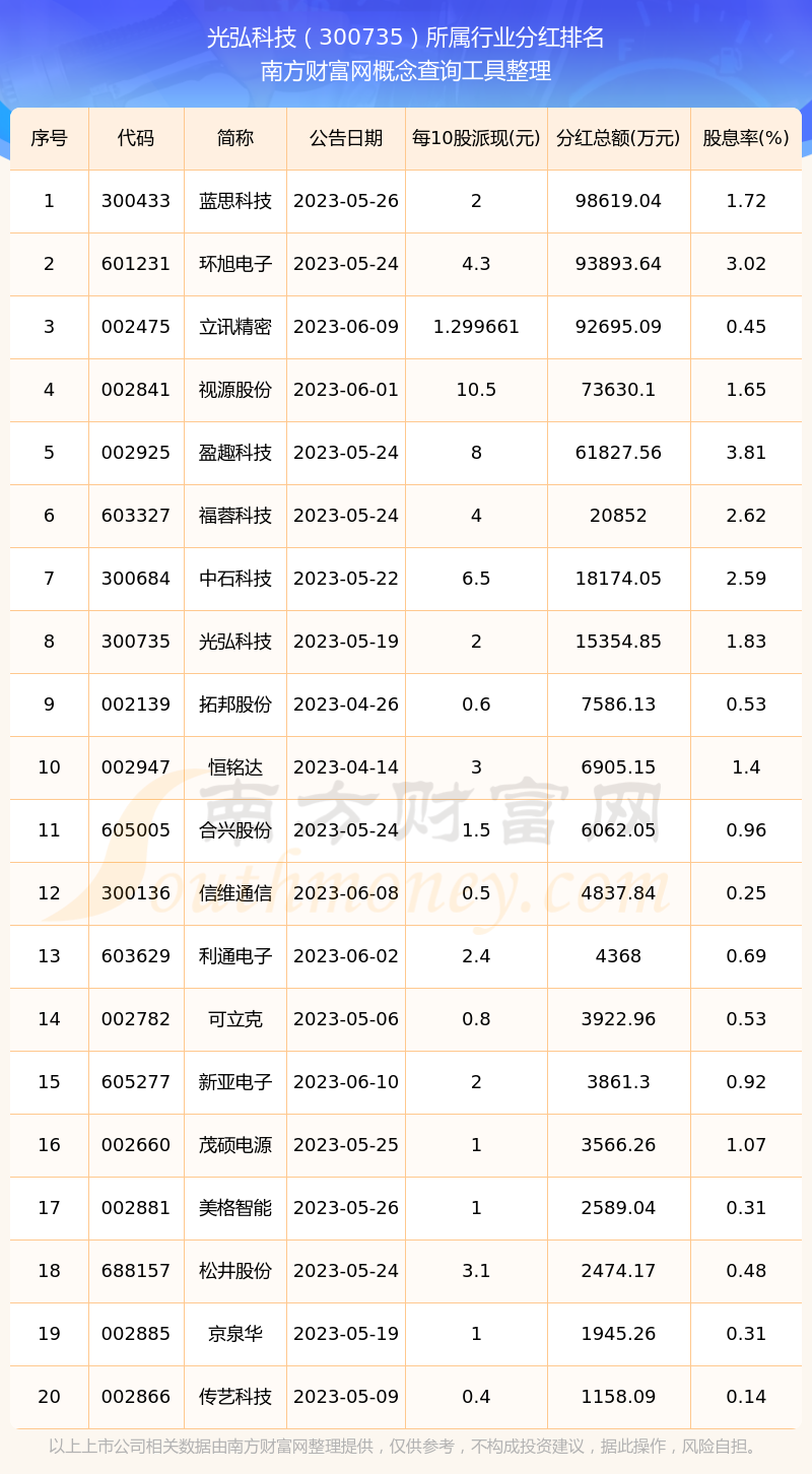 二、光弘科技300735行業(yè)分紅排名