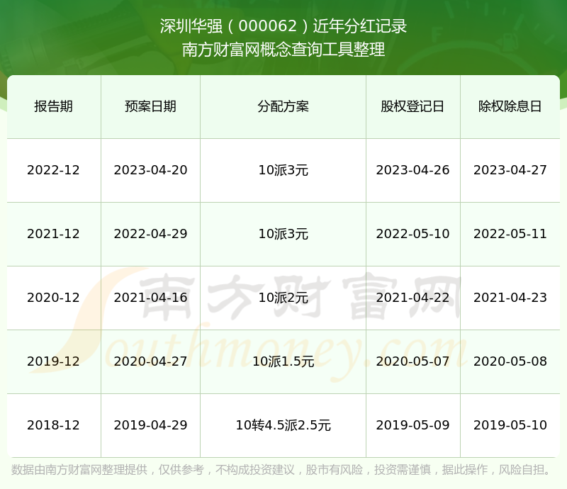 深圳華強(qiáng)最新一次公布的分紅方案:10派3元。