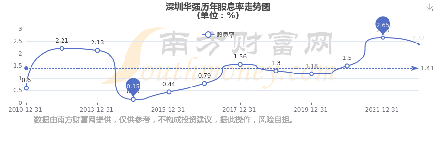 深圳華強(qiáng)歷年股息率走勢(shì)如下圖: