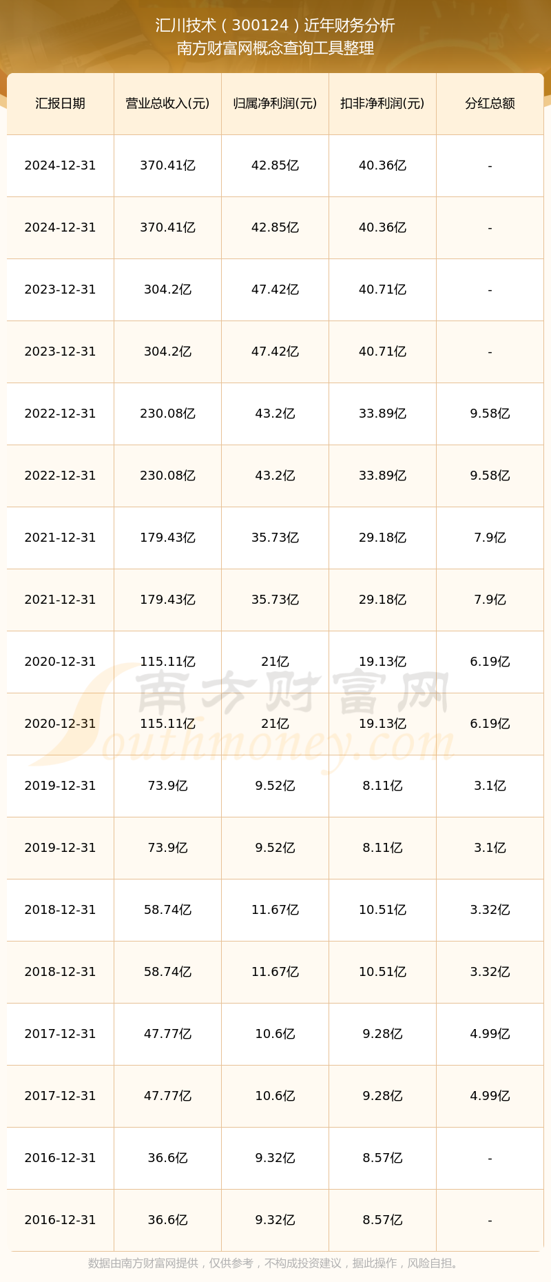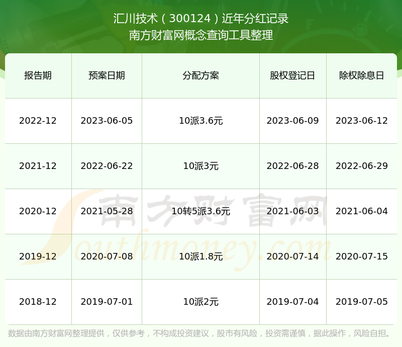 近年匯川技術(shù)分紅派息情況如下表所示: