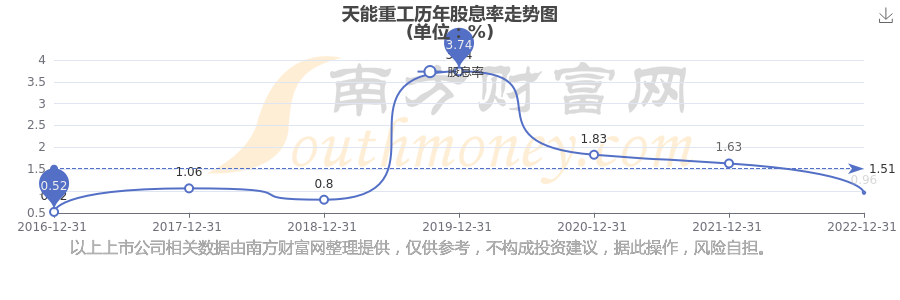 近年天能重工年度股息率走勢如下圖: