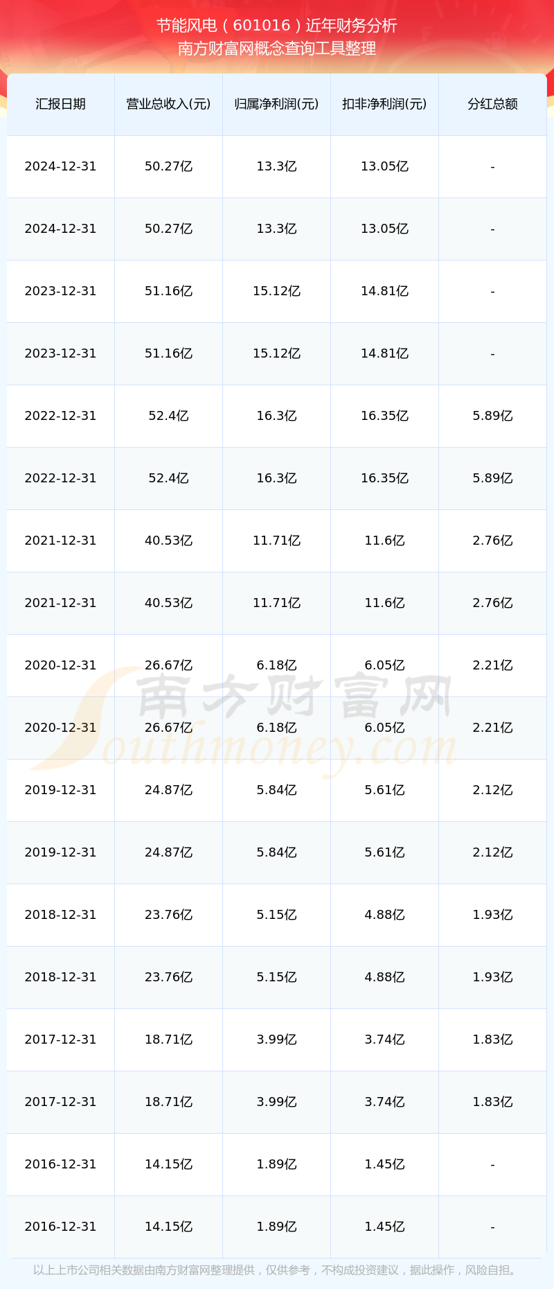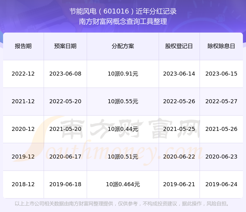 近年節(jié)能風(fēng)電分紅派息情況如下表所示: