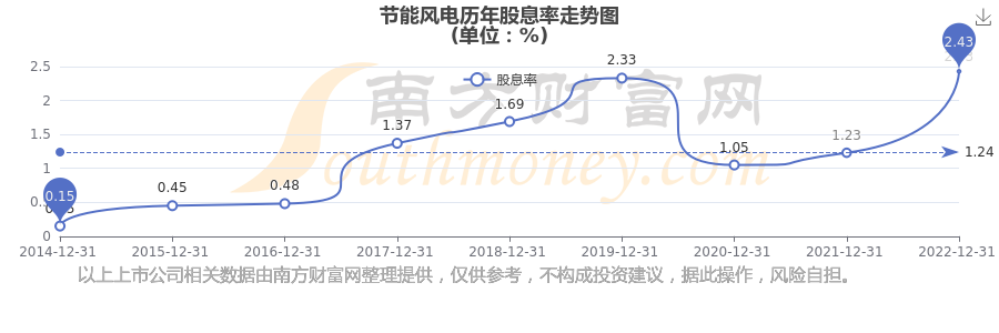 節(jié)能風(fēng)電歷年股息率走勢如下圖: