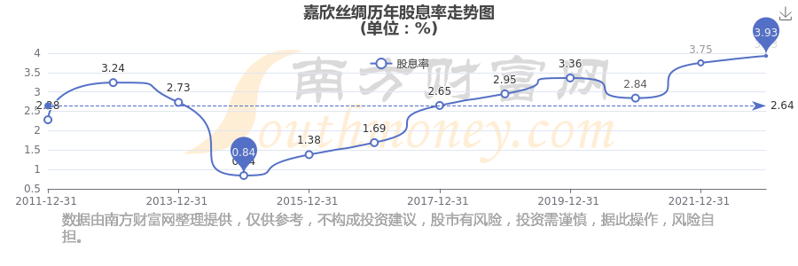 近年嘉欣絲綢年度股息率走勢(shì)如下圖: