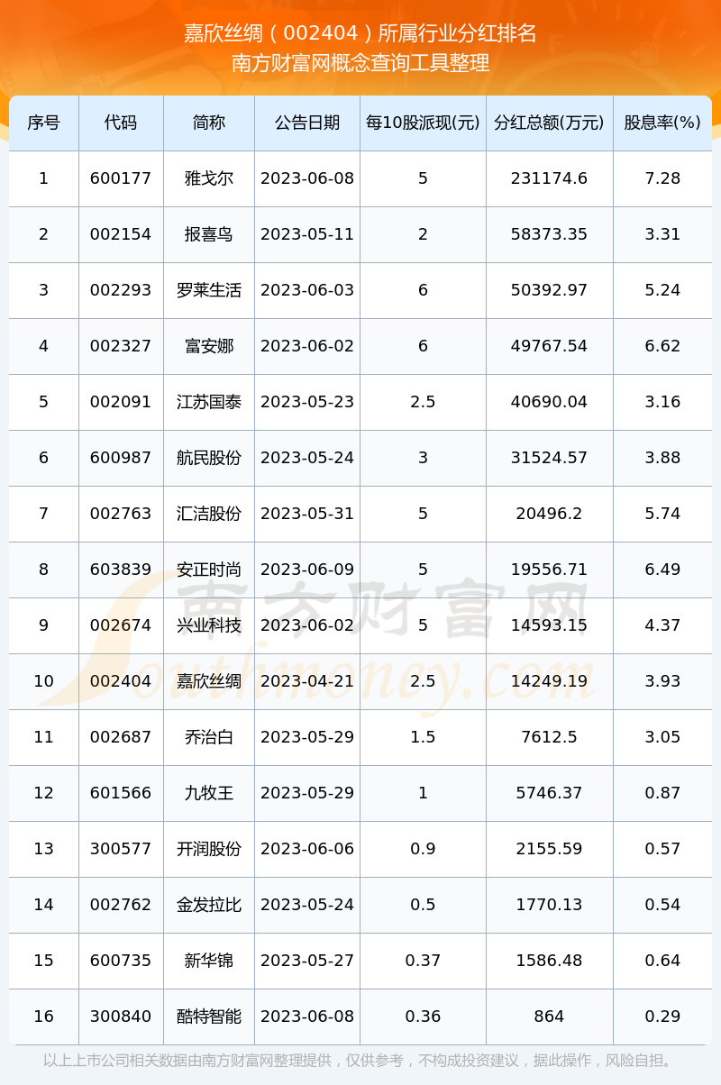 二、嘉欣絲綢002404行業(yè)分紅排名
