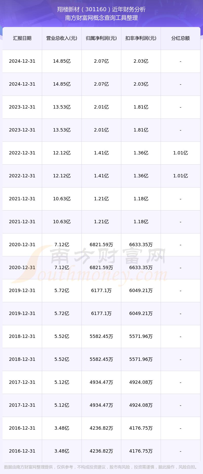 翔樓新材2024年總營收14.85億,同比增長9.74%;凈利潤2.07億,同比增長3.1%;銷售毛利率25.75%。