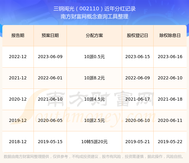 三鋼閩光最新一次公布的分紅方案:10派0.5元。