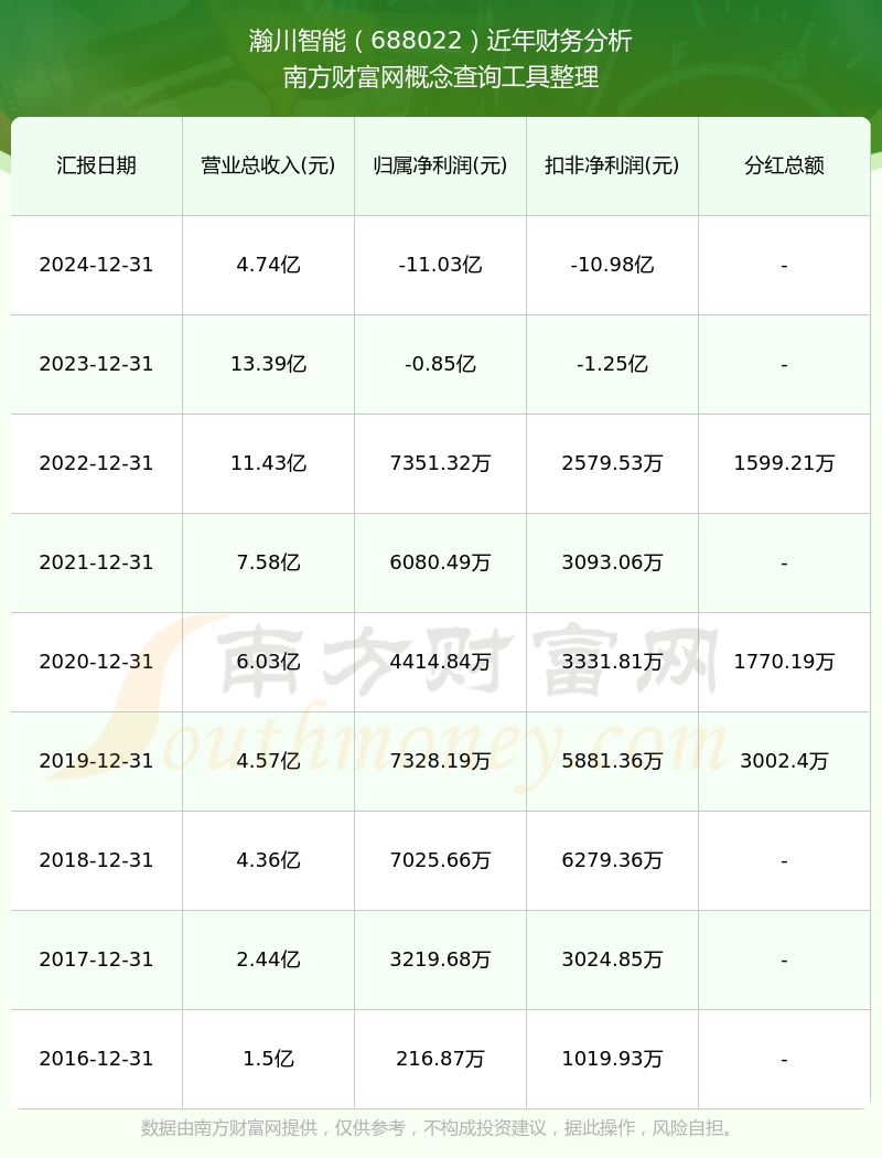 瀚川智能公司2024年實(shí)現(xiàn)營(yíng)業(yè)收入4.74億元,同比增長(zhǎng)-64.61%;凈利潤(rùn)-11.03億元,同比增長(zhǎng)-1204.76%;毛利率-6%。