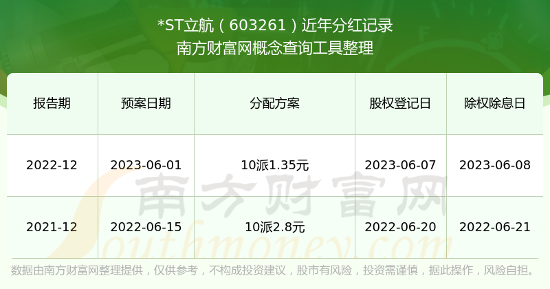 *ST立航最新一次公布的分紅方案:10派1.35元。