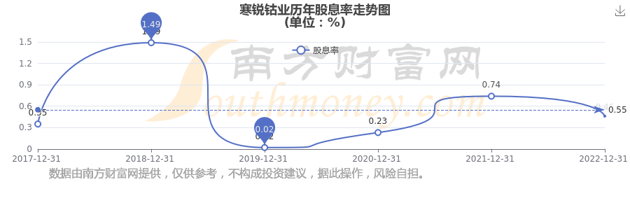 寒銳鈷業(yè)歷年股息率走勢(shì)如下圖: