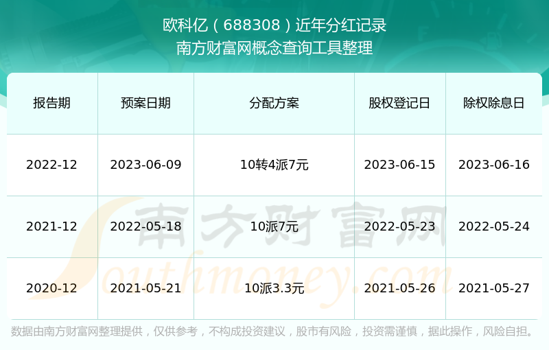 歐科億最新一次公布的分紅方案:10轉(zhuǎn)4派7元。