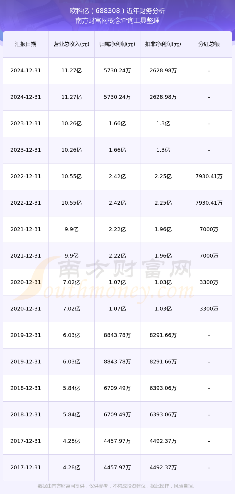 2024年報顯示,歐科億實現(xiàn)營收11.27億,同比增長9.81%;凈利潤5730.24萬,同比增長-65.48%;毛利率22.66%。