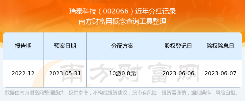 瑞泰科技最新一次公布的分紅方案:10派0.8元。