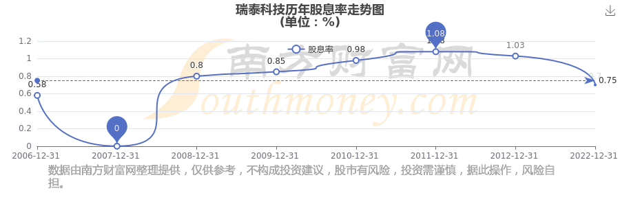 瑞泰科技?xì)v年股息率走勢(shì)如下圖: