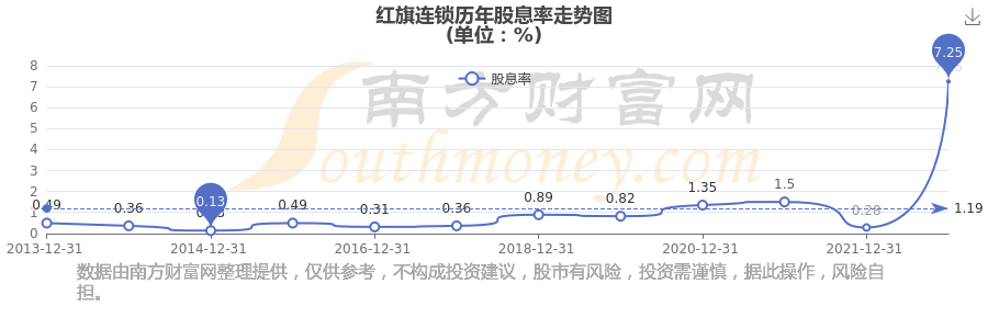 紅旗連鎖歷年股息率走勢(shì)如下圖:
