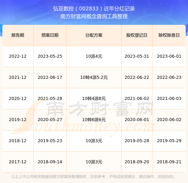 弘亞數(shù)控歷年分紅派息情況如下表所示: