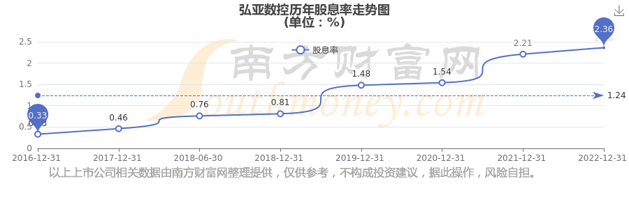 弘亞數(shù)控歷年股息率走勢(shì)如下圖: