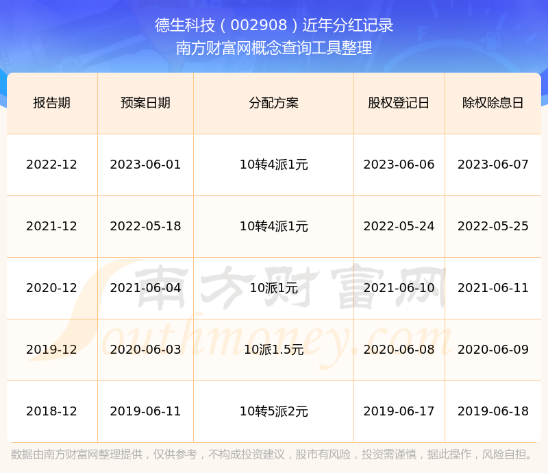 德生科技最新一次公布的分紅方案:10轉4派1元。