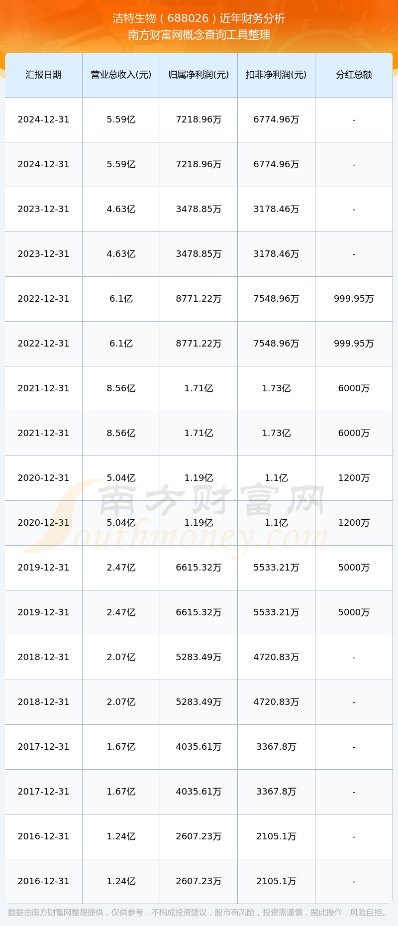潔特生物公司2024年實現(xiàn)營收5.59億元,凈利潤7218.96萬元,毛利率41.41%。